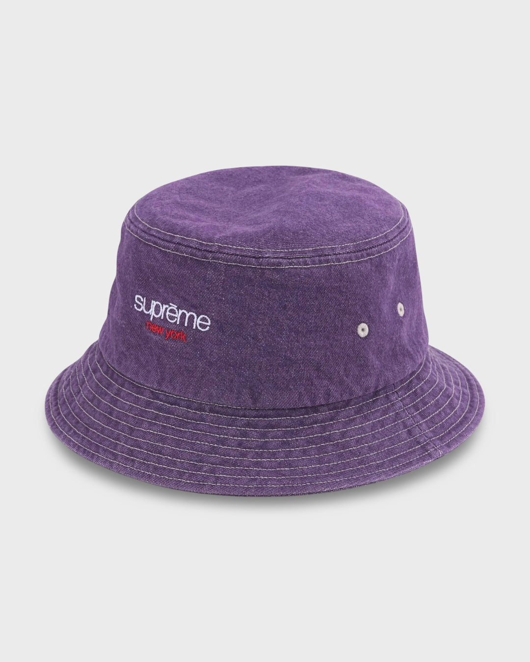 All cotton 13 oz. denim crusher with embroidered logo on front.