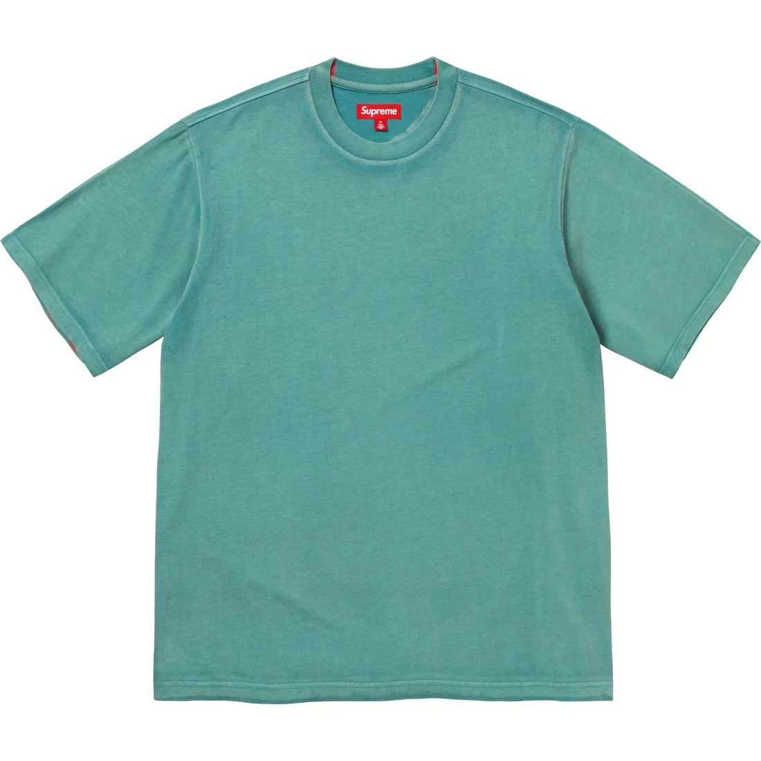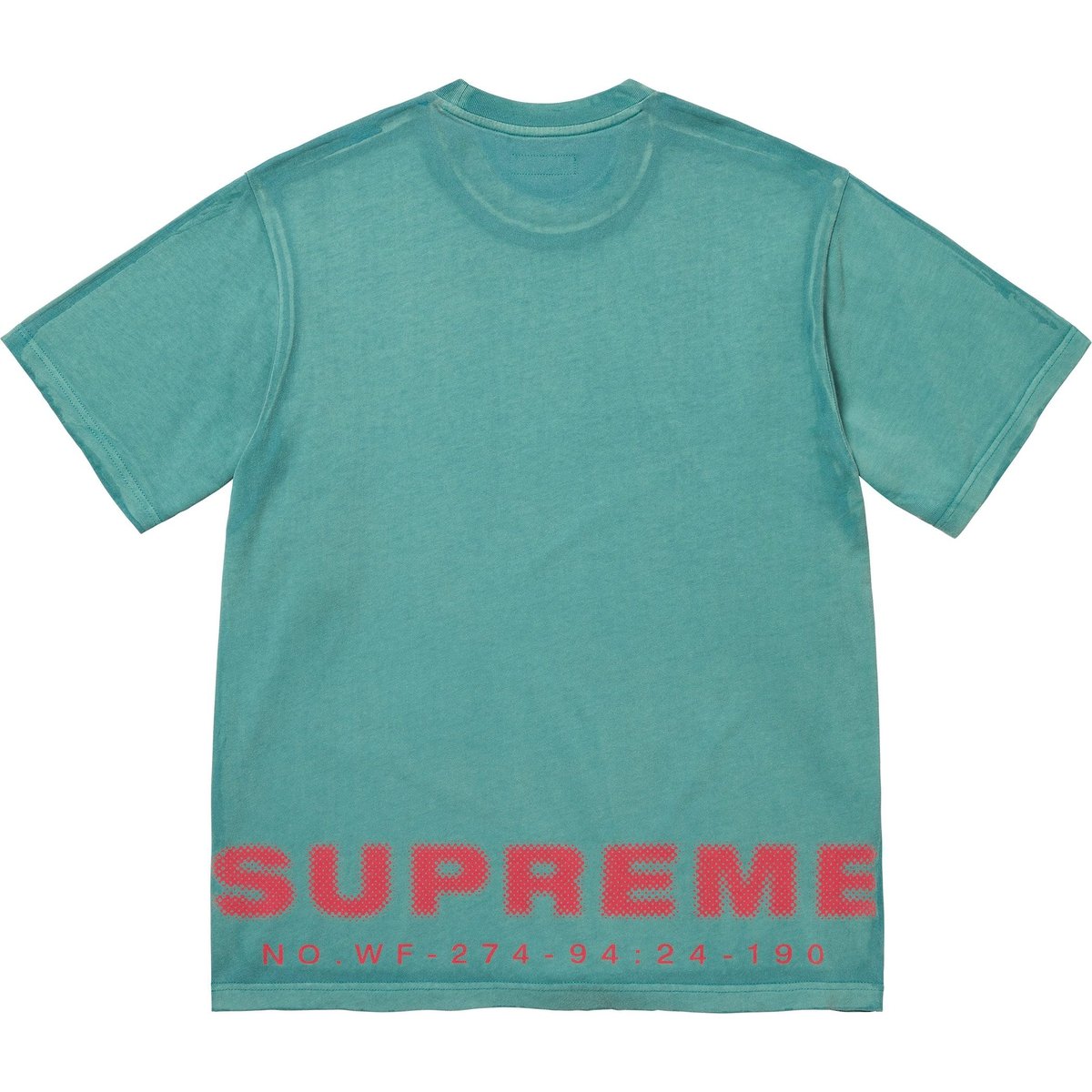 All cotton jersey crewneck with discharge printed logo at back hem.