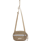 Water resistant Cordura® nylon with embossed logo lining. Main zip compartment with interior organizer pocket and hanging key clip. Zip pocket at front and mesh pouch pocket at back. Adjustable neck strap. Woven logo label and 3M® Reflective stripe at front with silicone logo trim at top. 6.2" x 4.7". 1.5L.