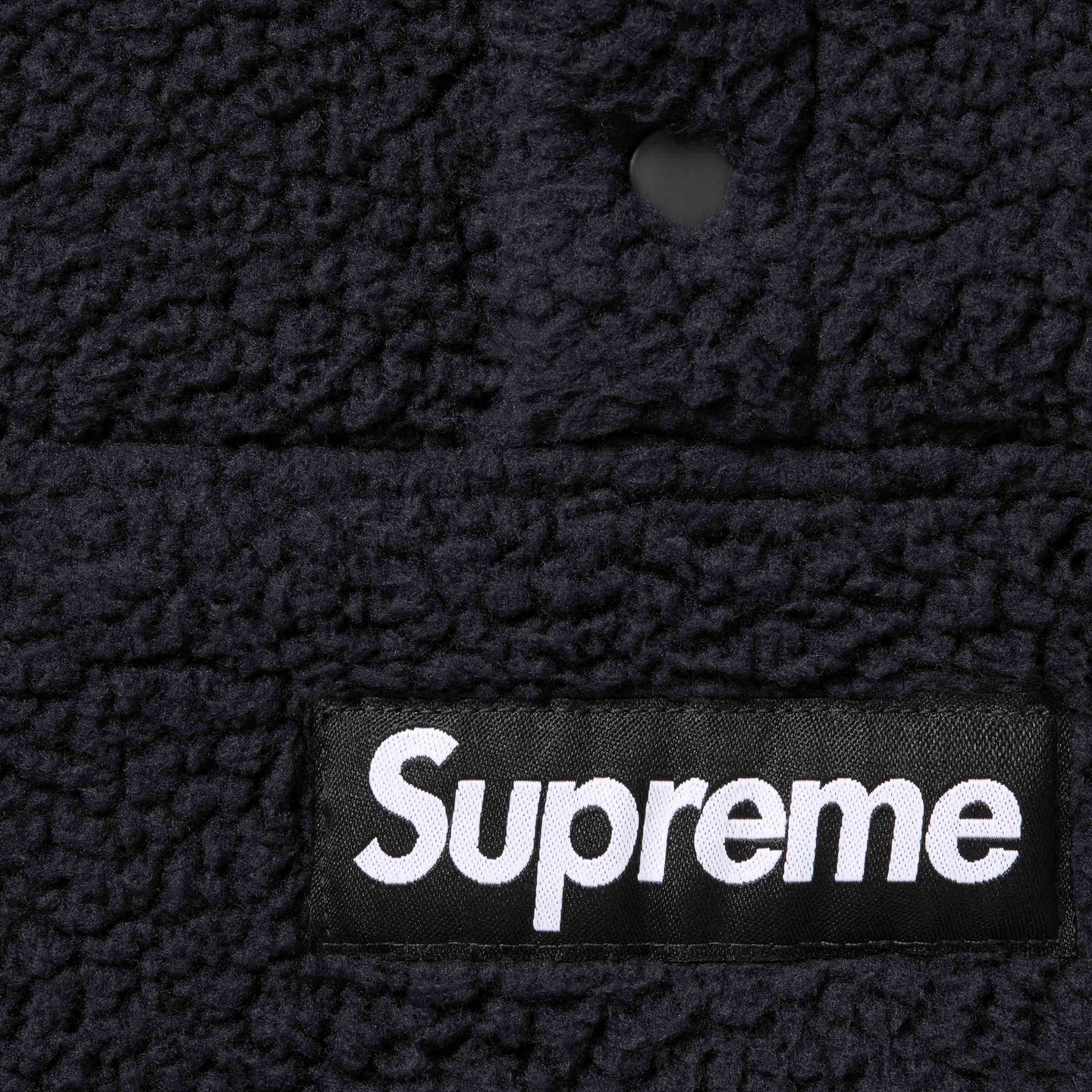Supreme X Polartec® 300 shearling fleece with half snap closure. Zip pouch pocket at lower front. Interior elastic shockcord at hem with elastic binding at cuffs. Woven logo label at chest and embroidered logo at cuff. Water resistant nylon reverse side with welt zip pouch pocket at lower front. Woven logo label at lower front.