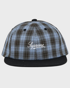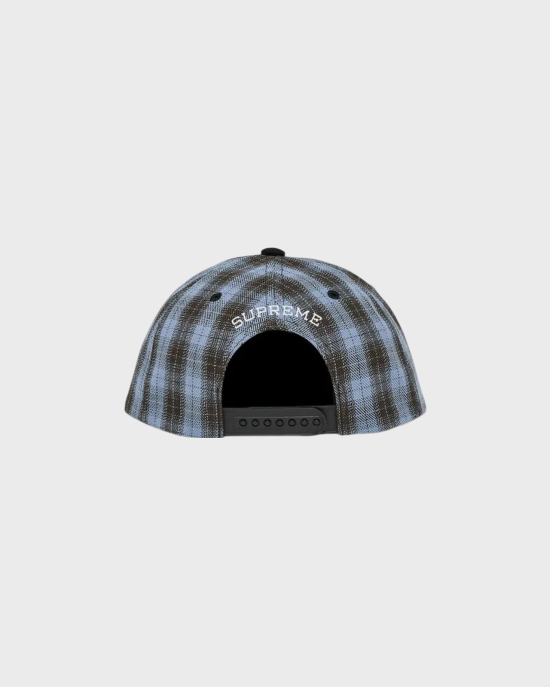 The Supreme Script Logo 6-Panel in Blue Plaid was released on April 25, 2024, as part of Supreme's Spring/Summer 2024 collection. It features an all-cotton construction with a snap closure and embroidered logos on the front and back.