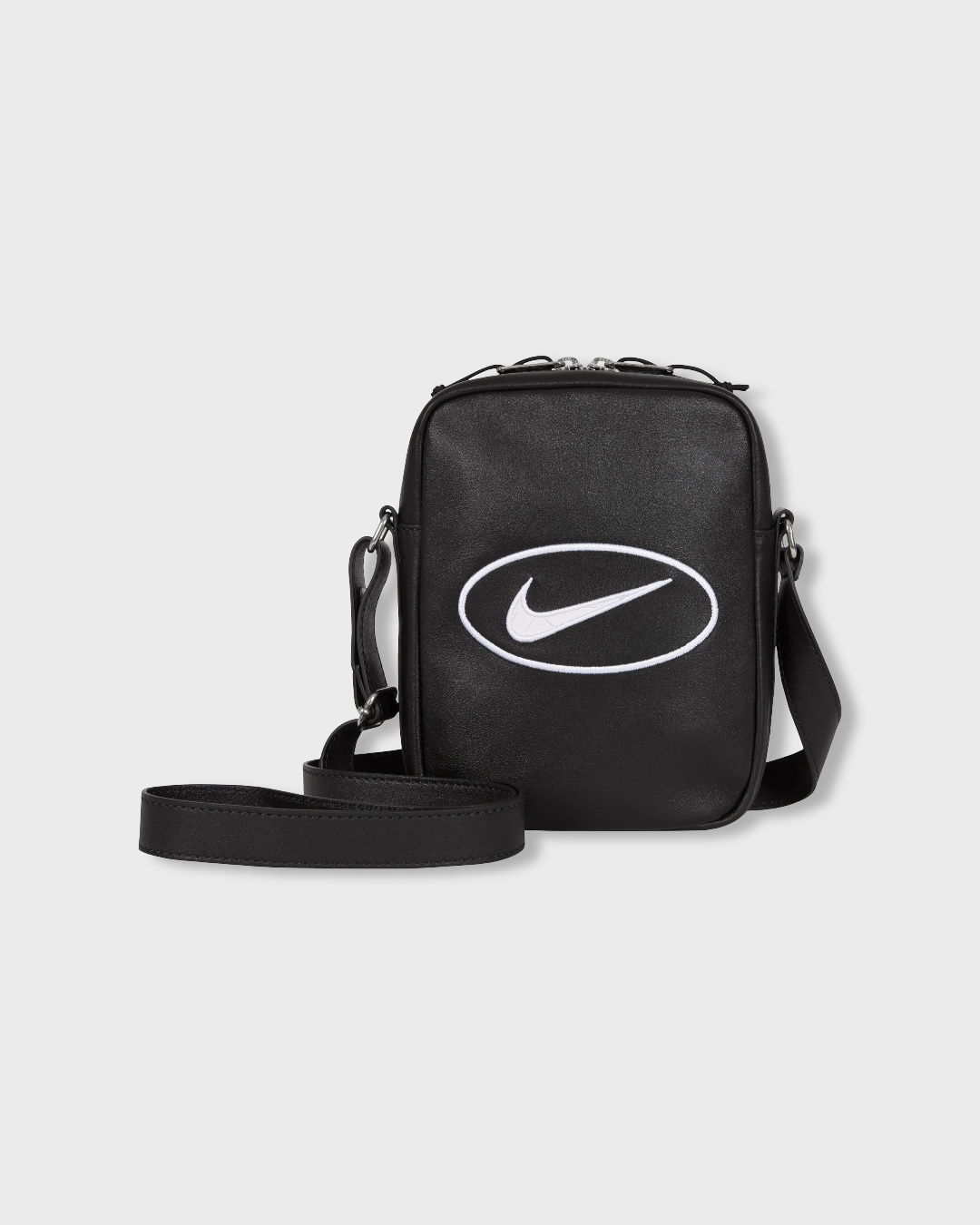 The compact yet spacious silhouette features dual branding, tonal zippers, and an adjustable strap for versatile wear. Whether worn crossbody or over the shoulder, it delivers serious flex energy — perfect for carrying essentials while repping two icons at once.