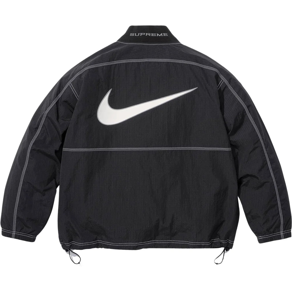 Water resistant nylon ripstop with quilted taffeta lining and reflective topstitching. Half zip closure with welt zip pouch pocket at lower front. Interior elastic shockcord at hem with elastic cuffs. Knit rib collar with jacquard logo at back. Reflective embroidered logo at chest. Twill logo appliqué at back. Made exclusively for Supreme
