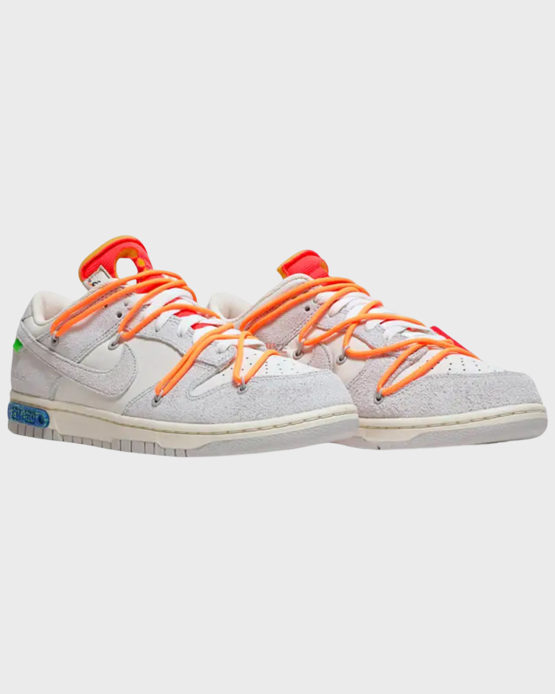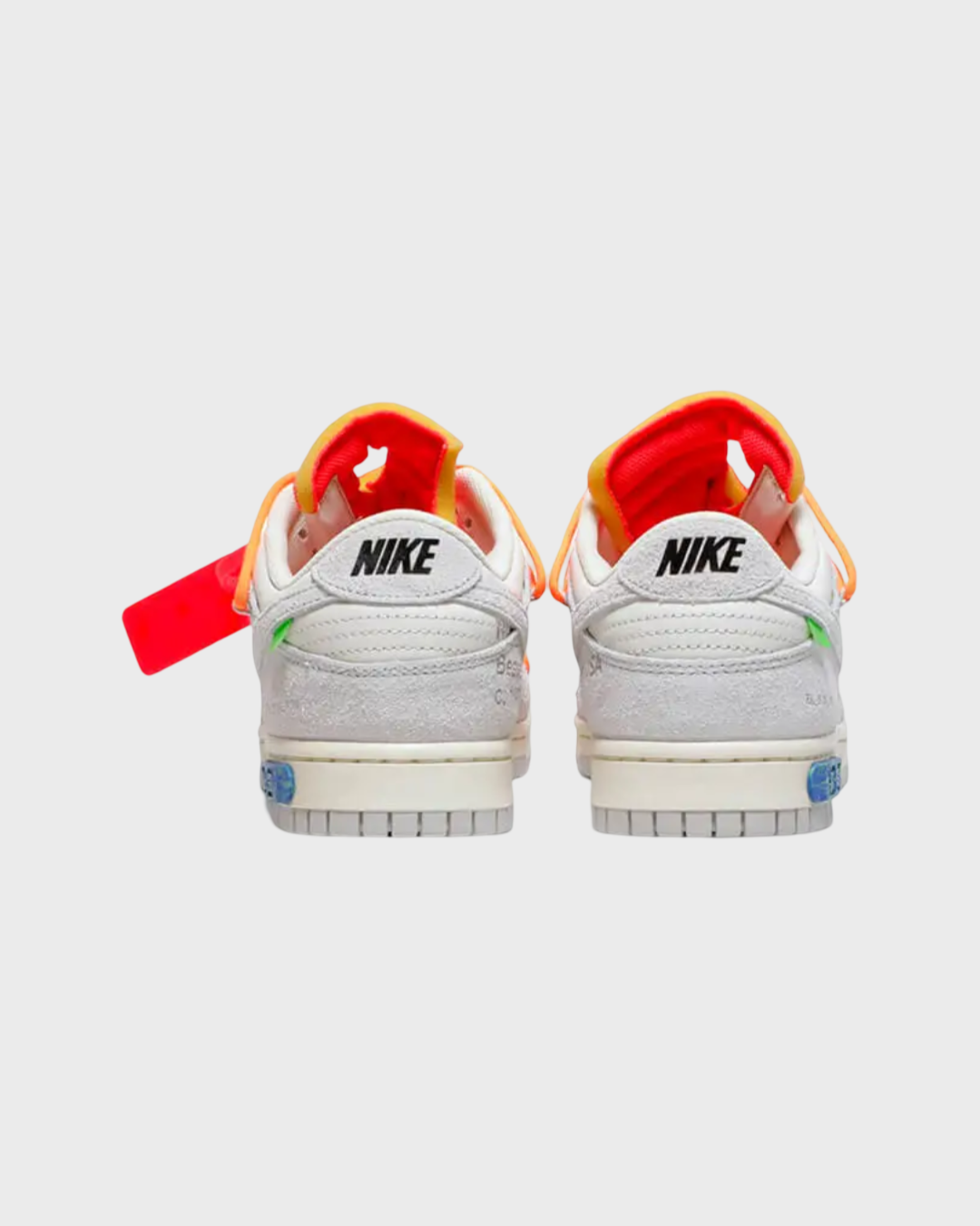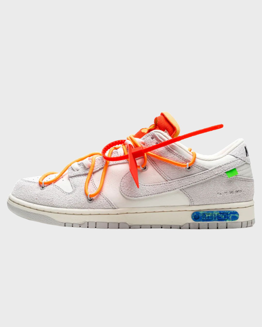 The Off-White x Nike Dunk Low Lot 31/50 is part of the exclusive “Dear Summer” collection, a 50-pair series reimagining the Dunk Low through Virgil Abloh’s distinctive lens. Lot 31 keeps the base consistent with others in the lineup — using premium sail canvas and neutral grey leather overlays — but adds its own character through unique accents.