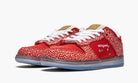 The Stingwater x Nike SB Dunk Low “Magic Mushroom” is a May 2021 collaboration between Daniel Kim’s skate brand and Nike SB on the venerable skate shoe. Fans of Stingwater will easily recognize the inspiration behind the design of the brand’s first-ever Nike SB Dunk colorway: mushrooms. Here, specifically, the red and white-spotted tips of mushrooms appear in an all-over safari-like pattern on the Varsity Red leather panels on the forefoot, eyelets, collar, and heel. Tonal leather forms the base of the shoe. A jeweled Swoosh is situated below embroidered “Stingwater” branding on both sides and inverted “Nike” branding on the heel. The phrases “empty your mind” and “please don’t step on me, I’m trying to GROE” appear on the underside of the tongue and on the green insoles, respectively. A hidden zip pocket on the inside of the tongue provides discreet storage and an icy translucent sole a modern look for the venerable skate shoe. Release date: May 10, 2021.