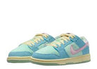 One of the most unique aspects of the Verdy Visty Dunk is its mix of materials. The fuzzy, hairy texture on the toe box, mid panel, tongue, and heel collar adds dimension and personality to the sneaker, while the pink leather Nike swoosh adds a smooth contrast. The pastel blue corduroy upper rounds out the design, giving the shoe a vintage, yet modern aesthetic. The yellow midsole and matching laces bring an extra pop of color, making this Dunk an instant standout whether you're skating or styling.