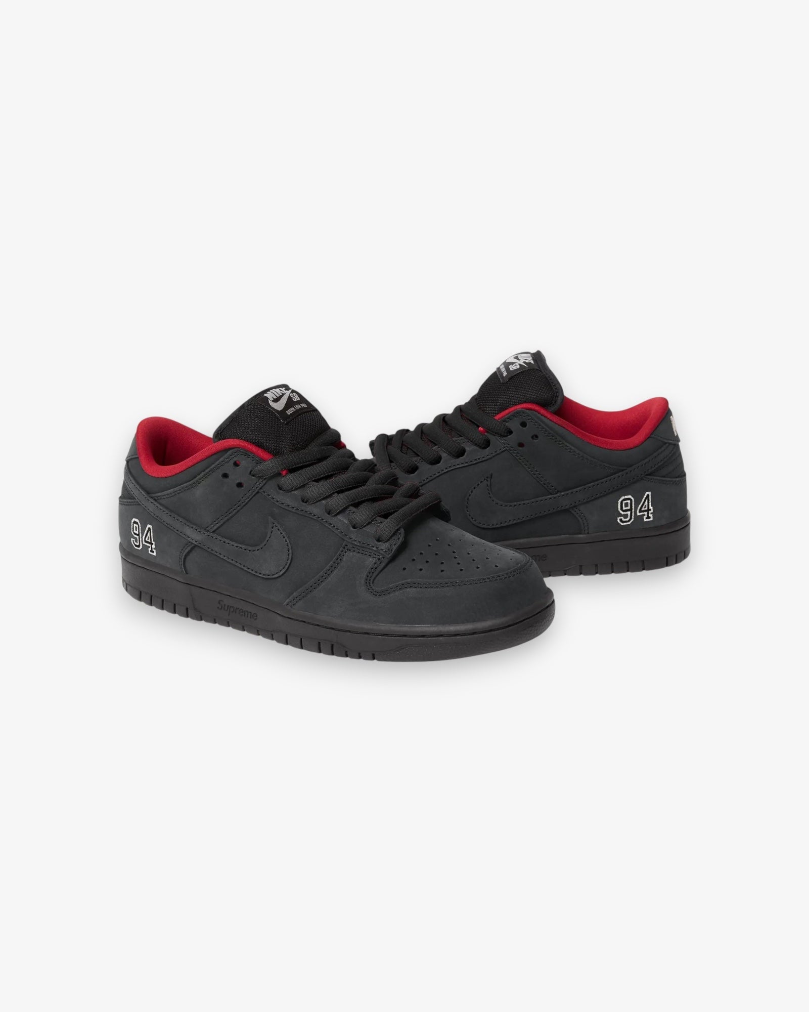 The Supreme x Nike SB Dunk Low “Black” is a modern classic born from the union of two streetwear giants. Part of Supreme’s iconic collaboration with Nike SB, this pair revives the early-2000s Dunk legacy with premium materials, bold branding, and skate-ready performance.