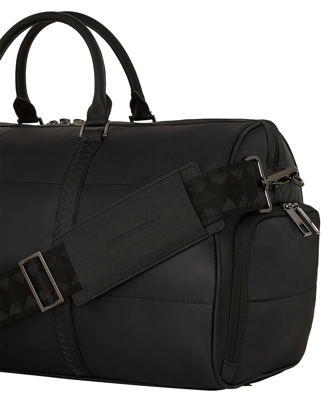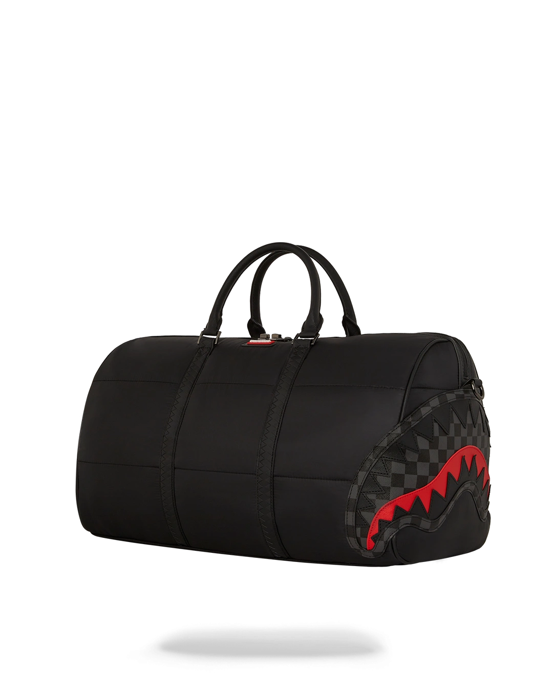 Sprayground Black Puffer Duffle Bag. This sleek and modern duffle combines a chic puffer design with versatile functionality, making it your go-to accessory for workouts, travel, or everyday use.