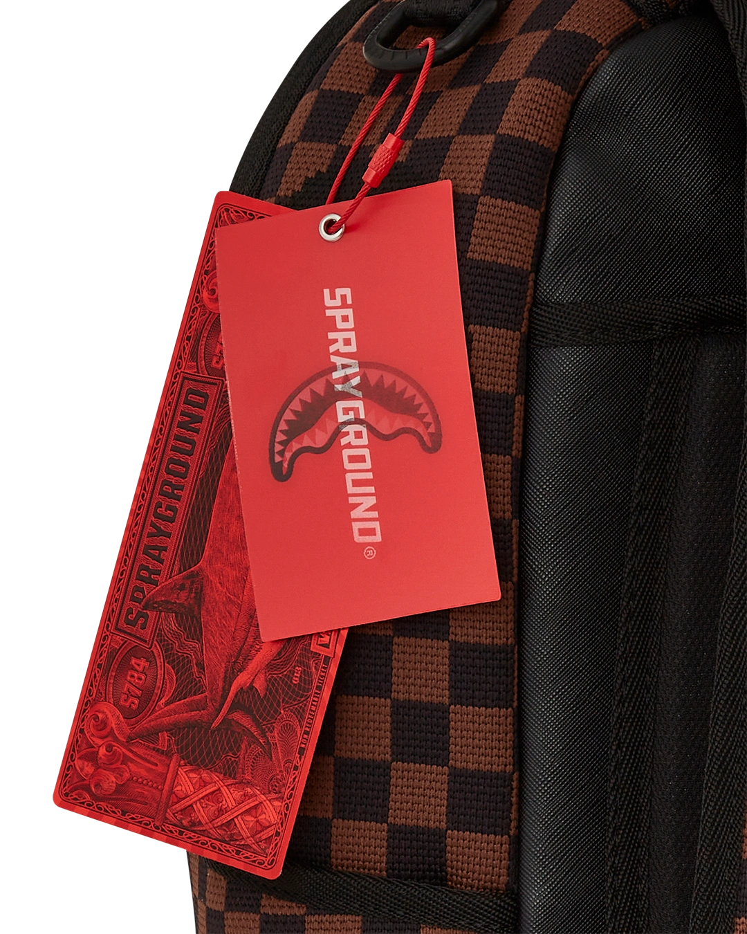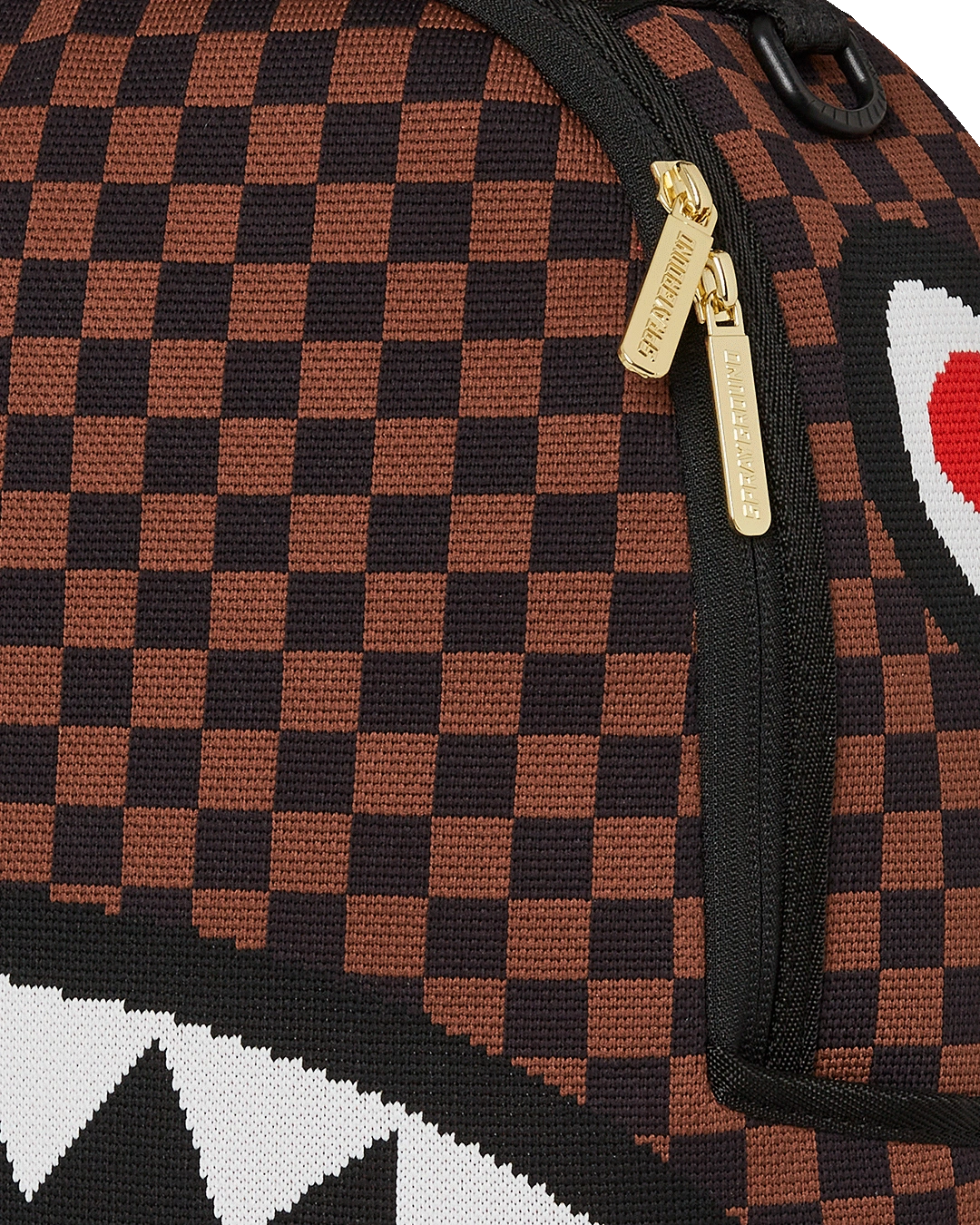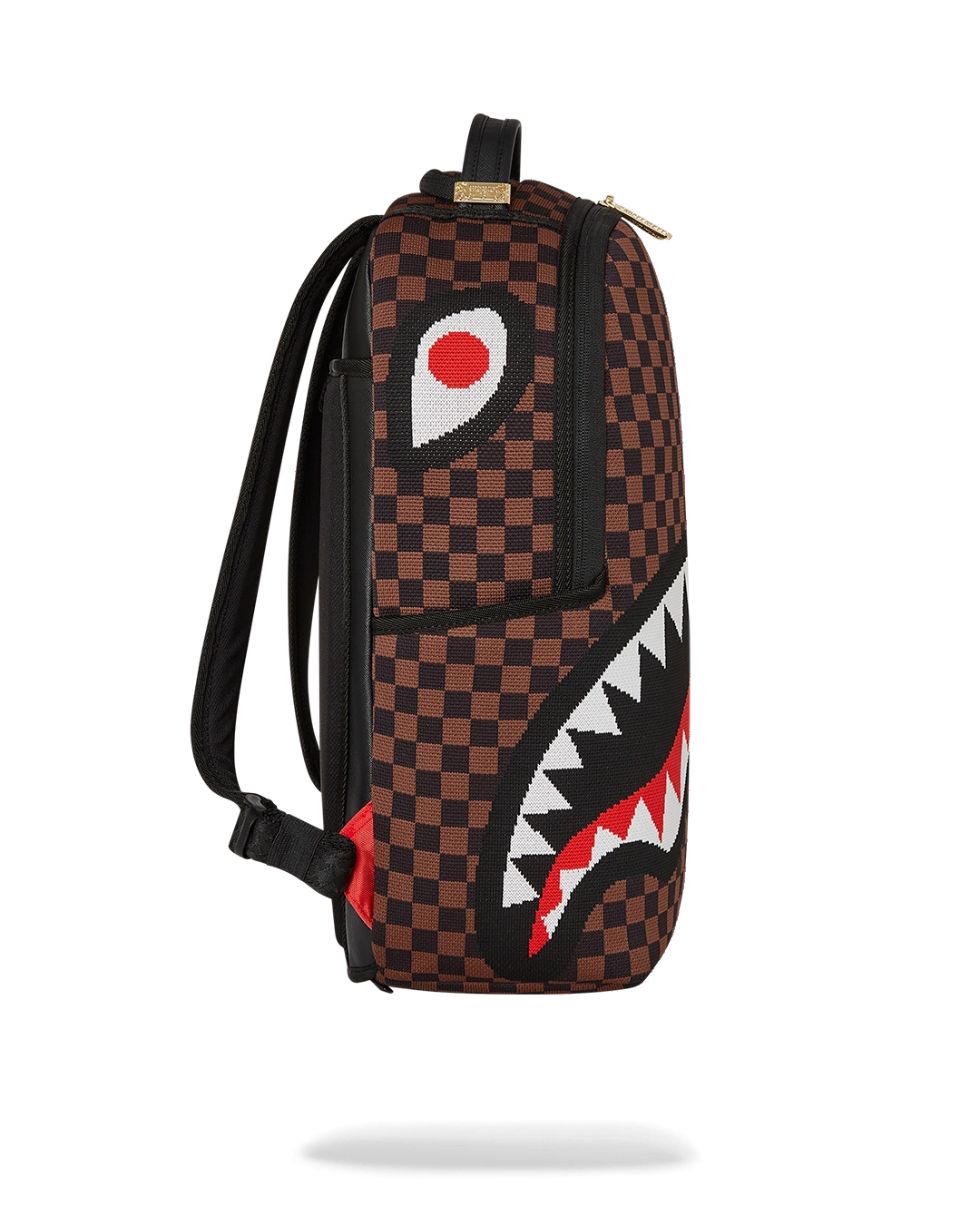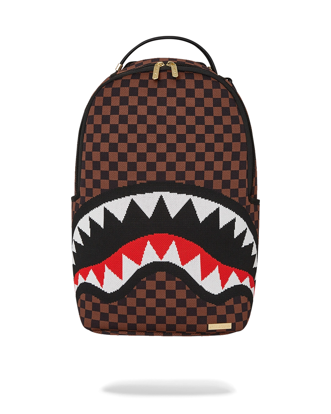 Sprayground Knit Sharks In Paris Backpack. This striking backpack features the iconic Sharks In Paris design, perfect for those who want to make a bold statement while staying organized on the go.