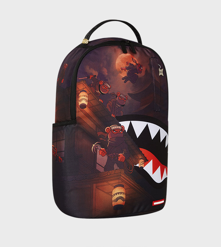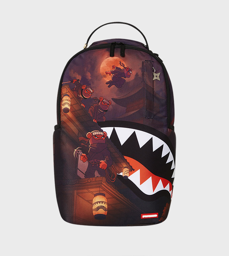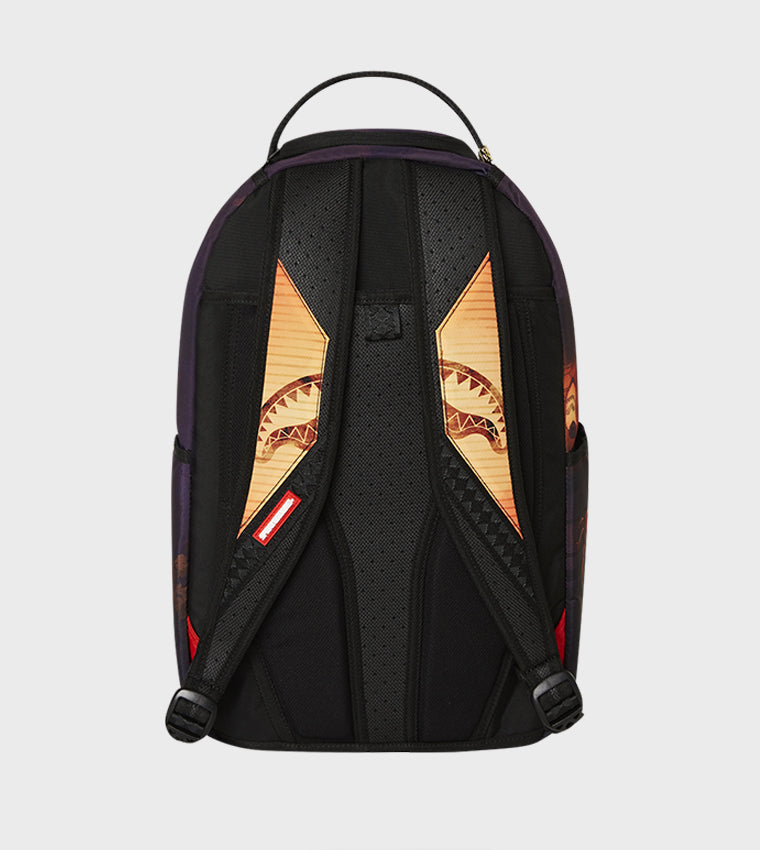 • Front zipper pocket • Side pockets • Zippered Stash pocket • Separate velour sunglass compartment • Ergonomic mesh back padding • Adjustable Straps for custom sizing • Gold zippers with metal hardware • Metal "Sprayground Authentic" badge • Slide through back sleeve connects to carry-on luggage to free your hands