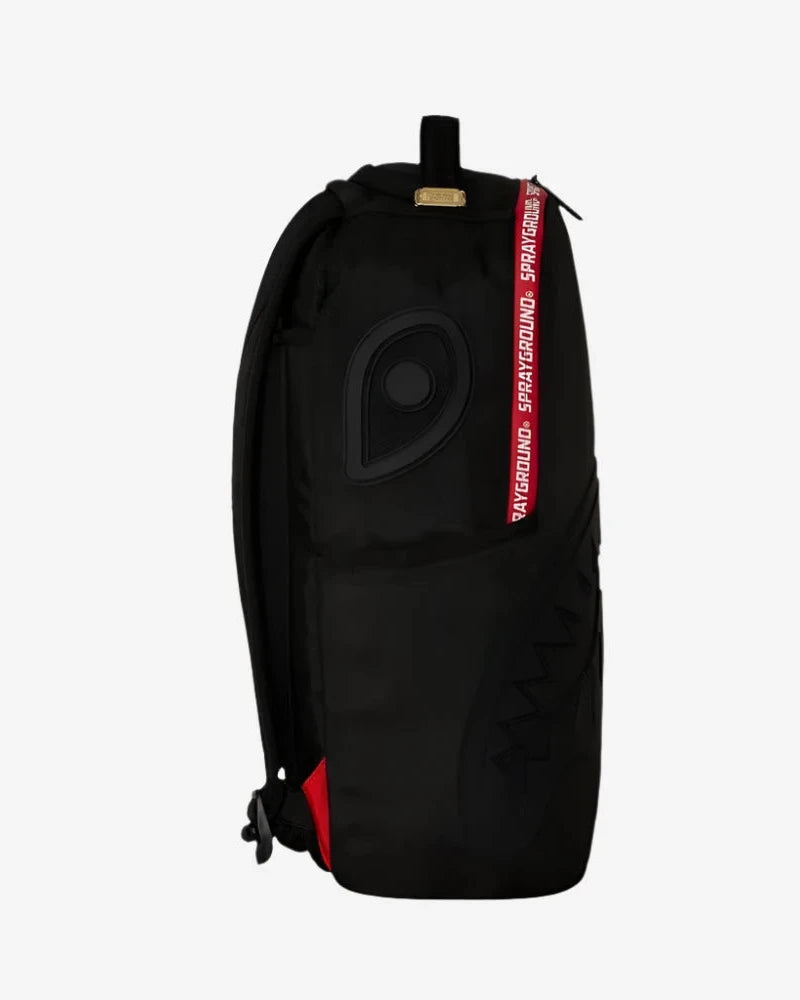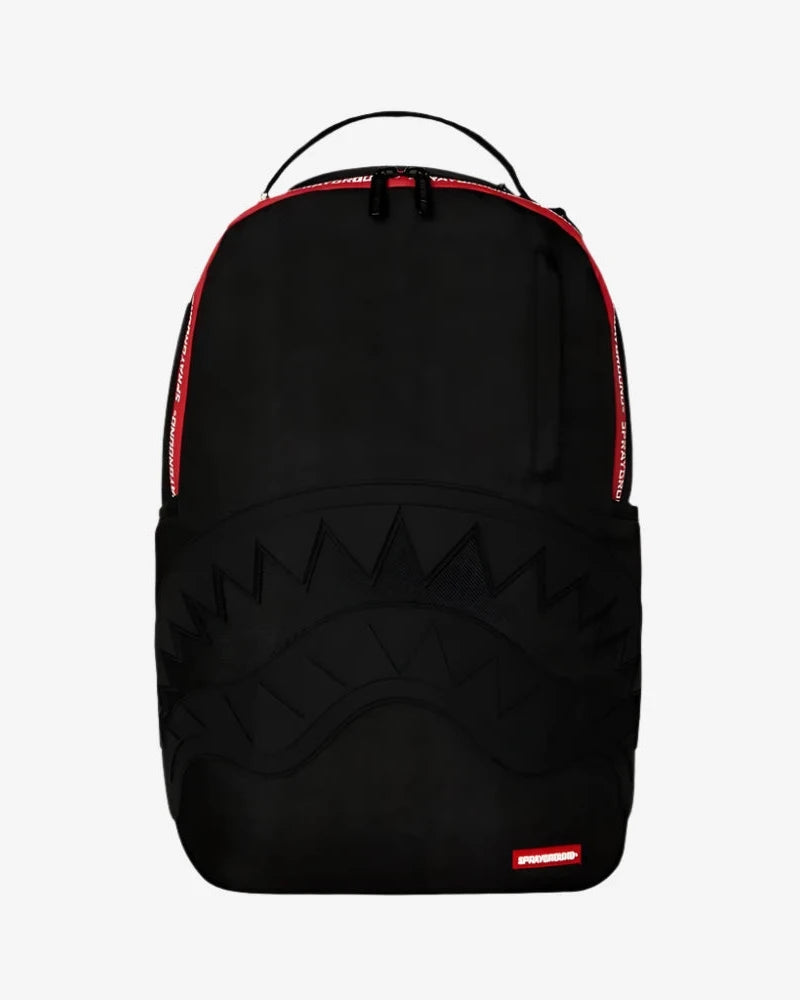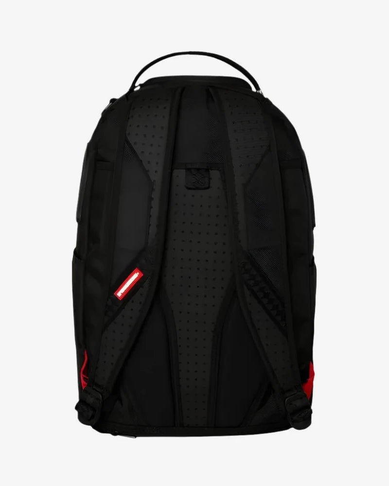 Often referred to as the Printed Zipper Shark Backpack (DLXSV), this signature design features the shark-mouth graphic sliced across a custom zipper. It's made from 100% faux leather, water-resistant fabric, with embroidered Sprayground branding and gold-metal hardware