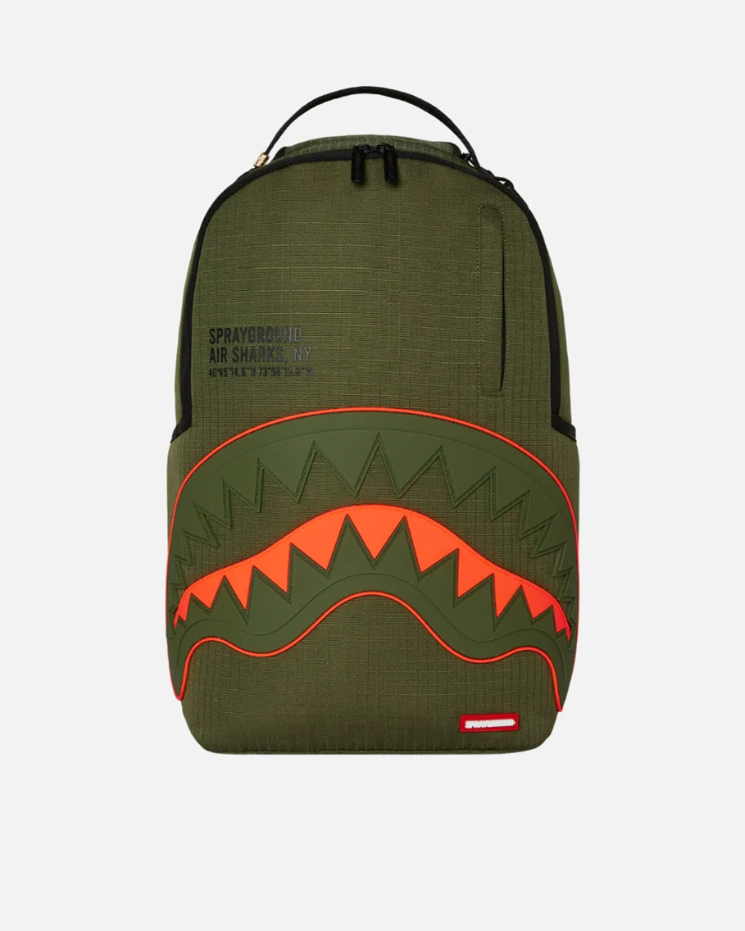 Built for the trenches, styled for the streets. The Shark Central Army DLX-Ripstop Backpack combines tactical edge with Sprayground’s unmistakable shark-mouth flair. Made from durable ripstop fabric in an army green tone, this backpack is ready for whatever your day—or mission—throws at you.