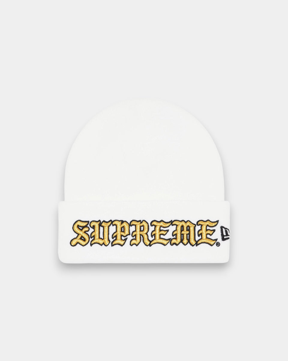 Supreme New Era Old English Beanie White