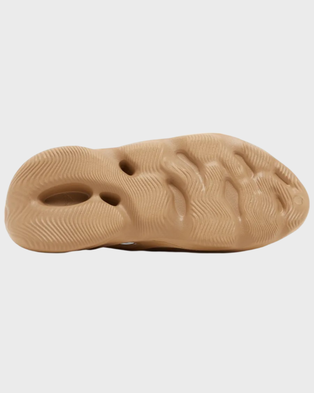 The Clay Taupe adidas Yeezy Foam RNR The upper is crafted with a smooth one-piece Primeknit material, which provides comfort, a flexible fit, and breathability. The shoe's midsole is made using adidas' proprietary EVA foam technology, providing cushioning and support. In addition, the midsole features a dynamic design with intricate textures and patterns. The shoe's outsole is crafted of durable rubber, ensuring stability and grip. The shoe also features a sock-like collar for a snug fit around the ankle.