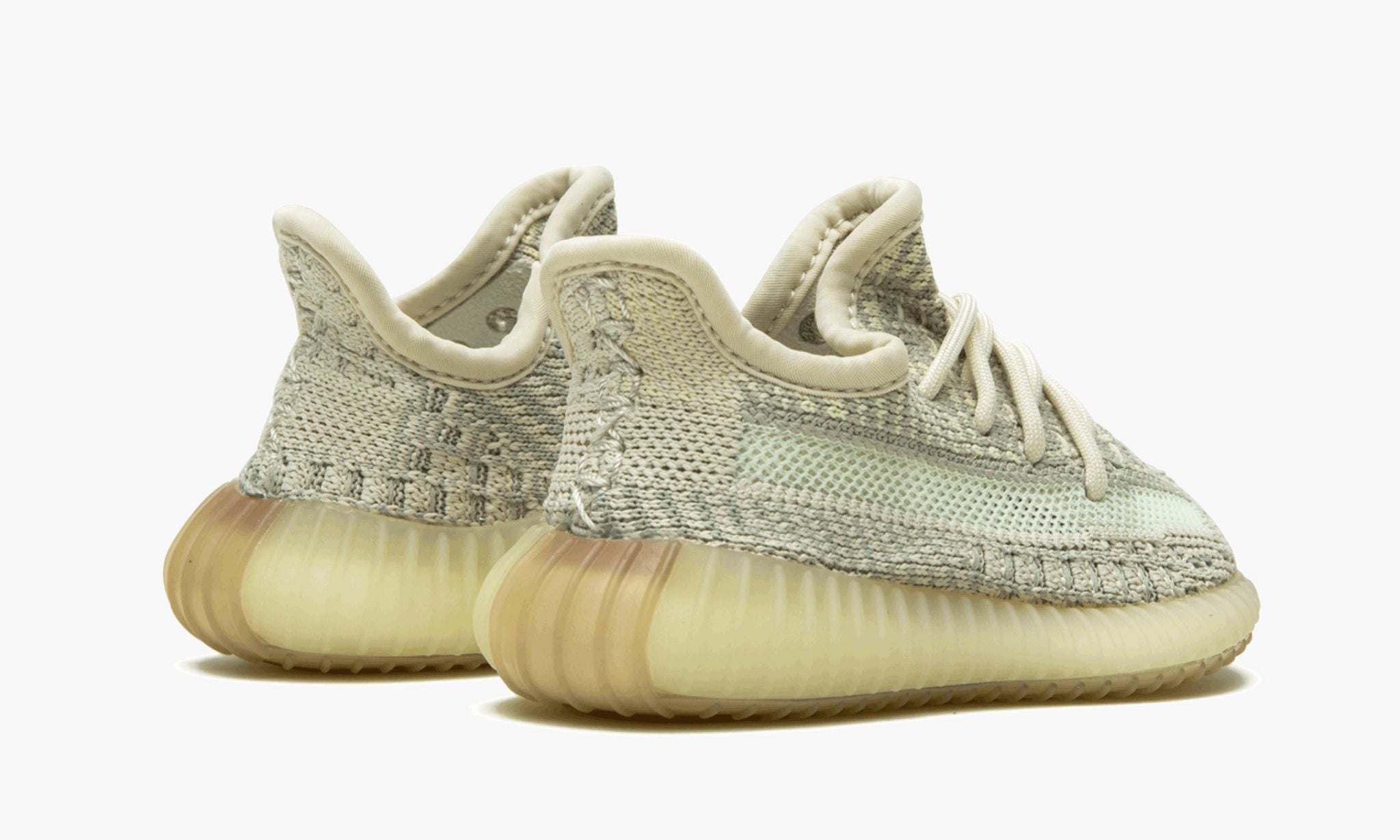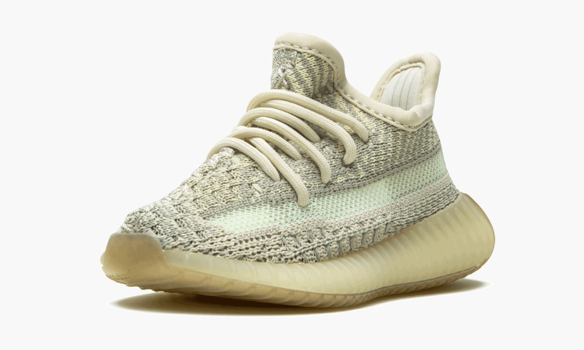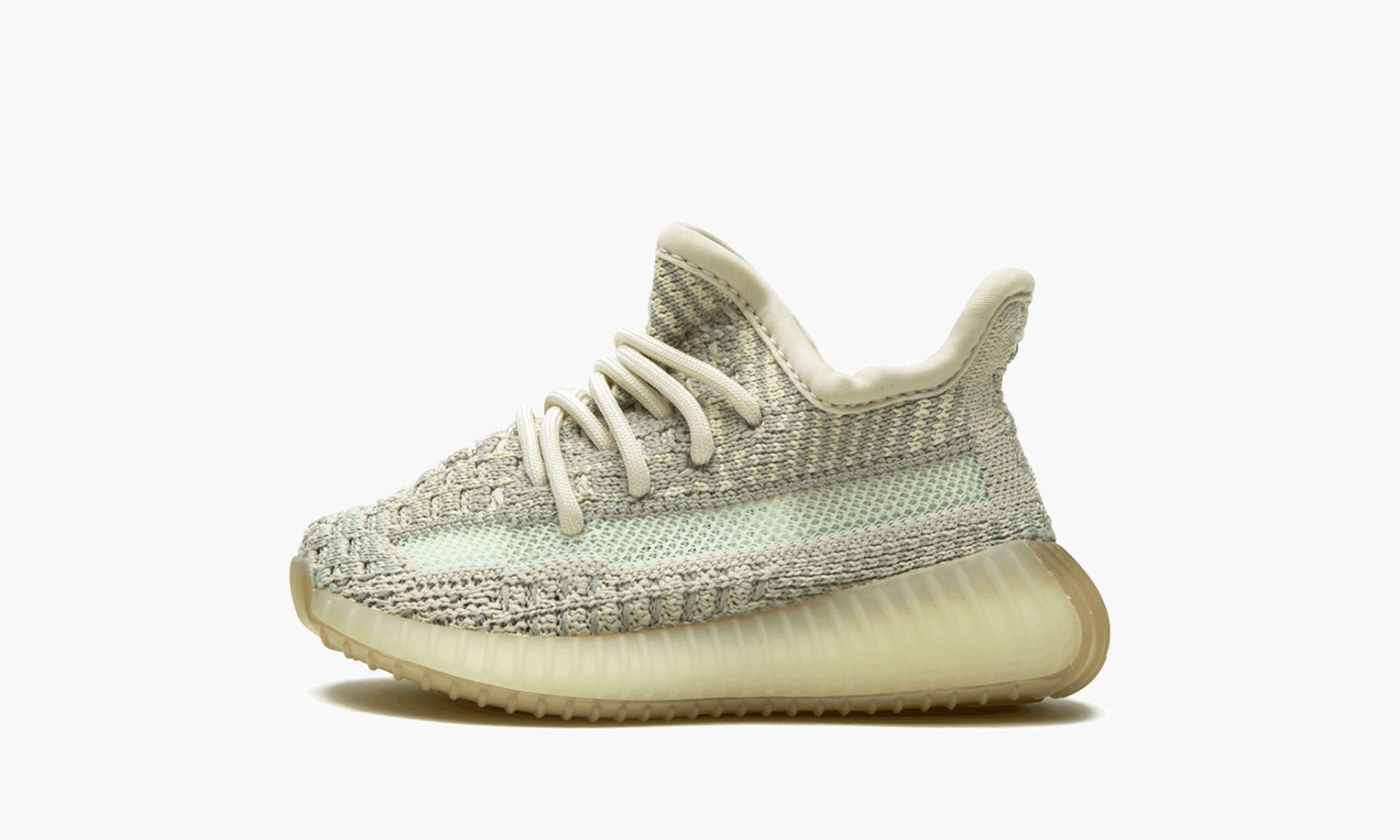 The adidas Yeezy Boost 350 V2 Infant "Citrin" is the baby sizing for the popular Yeezy colorway. Featuring the same look and construction of the adult sizing, the miniaturized "Citrin" edition is built with the same intricate Primeknit weave with transparent side stripes, but this time features tan and pale yellow tints. The citrus-like yellow hue is also found on the monofilament side stripes, as well as the translucent rubber midsole. The outsole receives a reddish tint to the translucent gum rubber to complete the colorway.