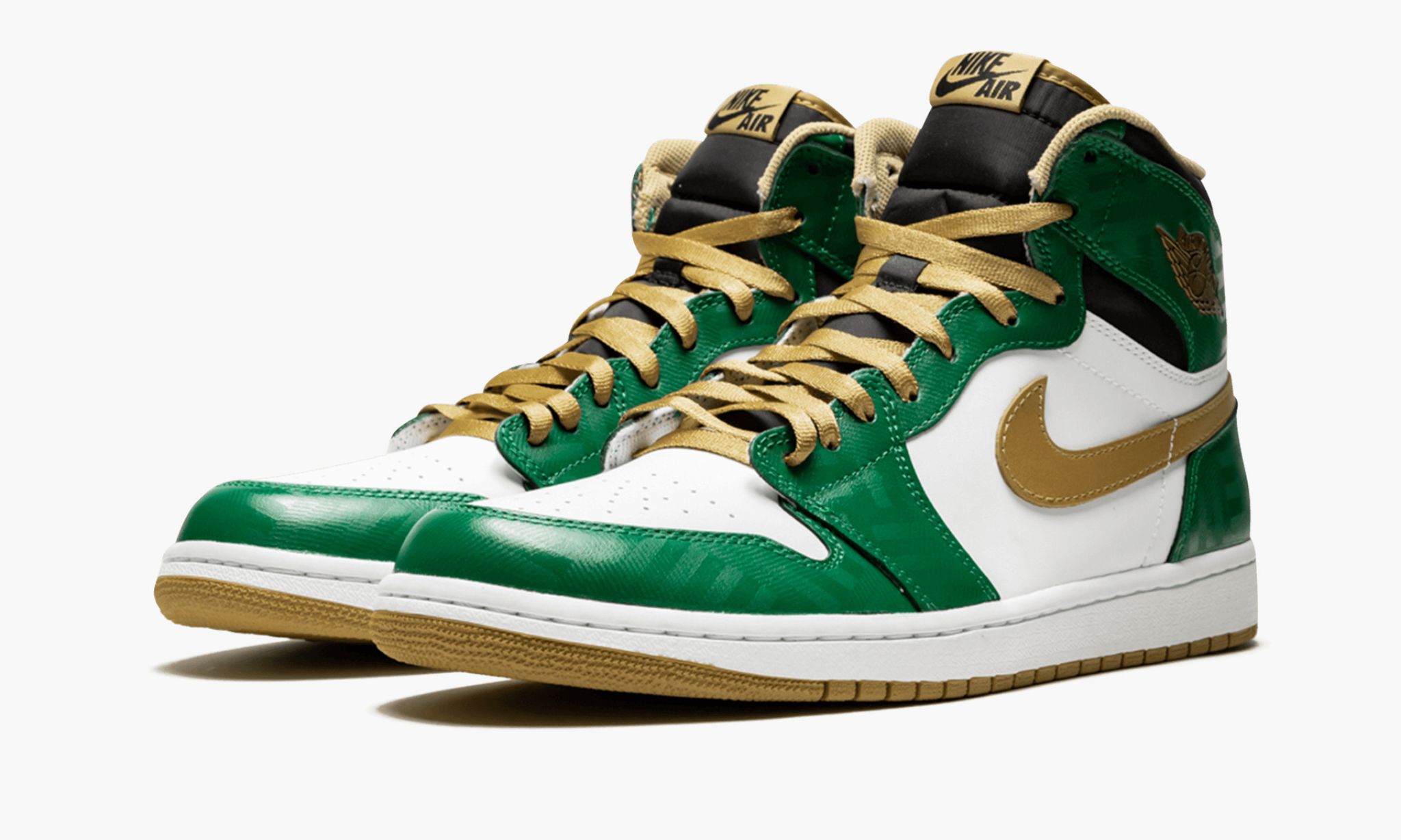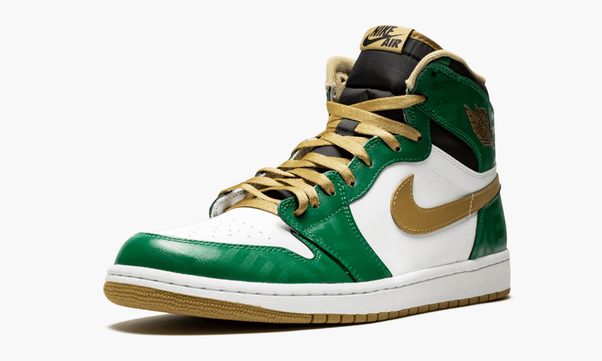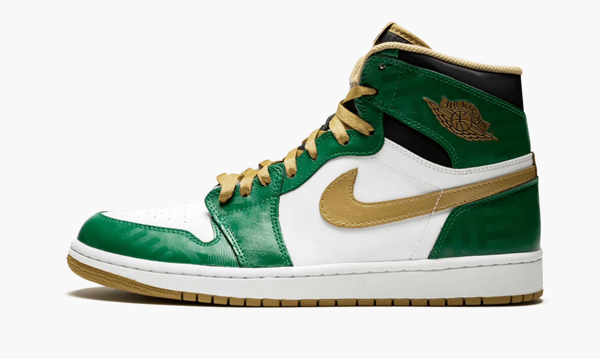 Inspired by the Boston Celtics, this Air Jordan 1 in green, gold, and white even comes complete with a tonal parquet court graphic on the green panels to reference the iconic court design of the Boston Garden.