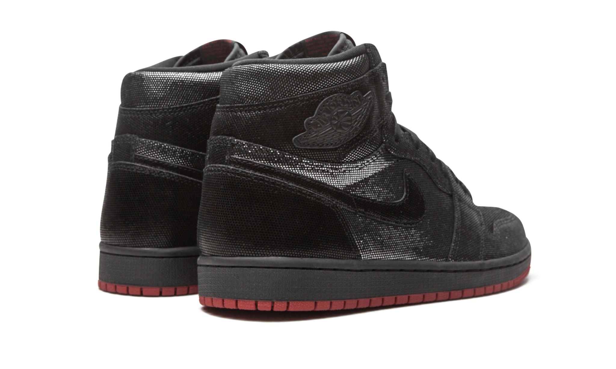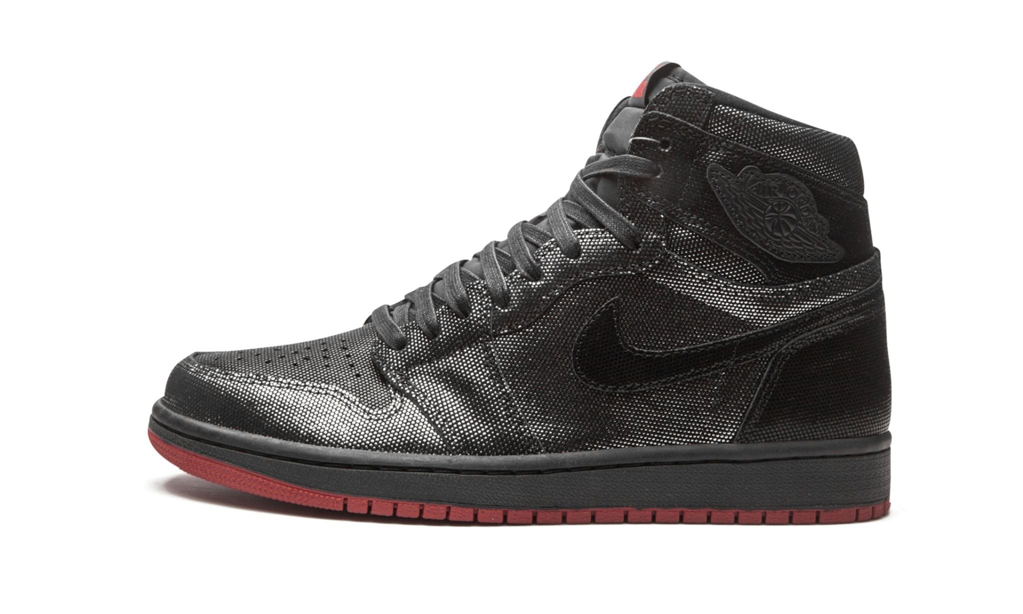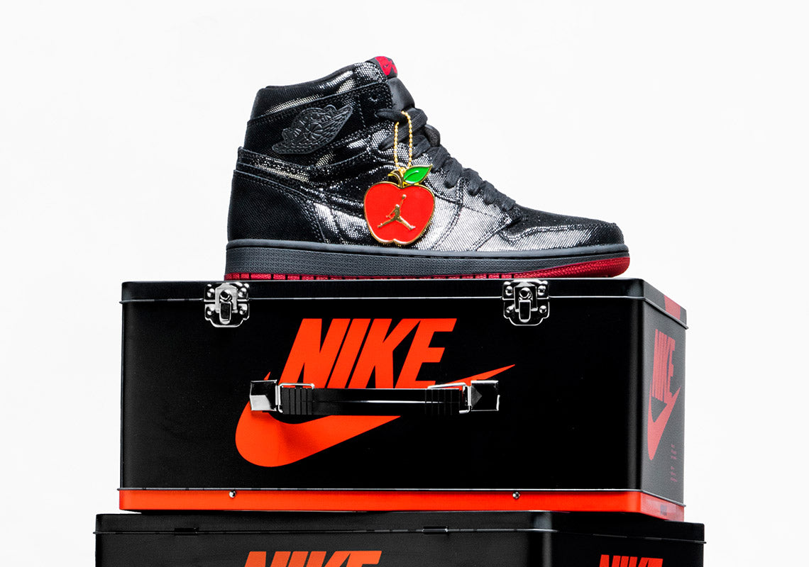The Air Jordan 1 High “SP Gina” is a special colorway of the iconic silhouette in collaboration with Shoe Palace. The colorway honors Virginia Wright, better known as SP Gina, a beloved teacher and Air Jordan fanatic from San Jose, California. SP Gina is a local hero, known for her work as an elementary school teacher helping educate and inspire children. She is also a self-proclaimed sneakerhead, who has developed a close relationship with her local Shoe Palace store in San Jose. Shoe Palace honored her with this limited edition colorway of the Air Jordan 1, featuring a black textile upper with a unique metallic texture. Red accents are found for the tongue’s Nike Air logo and the outsole. The Air Jordan 1 “SP Gina” released on May 25, 2019 and was sold exclusively by Shoe Palace. This edition comes in a special limited edition metal box that resembles a lunch box.