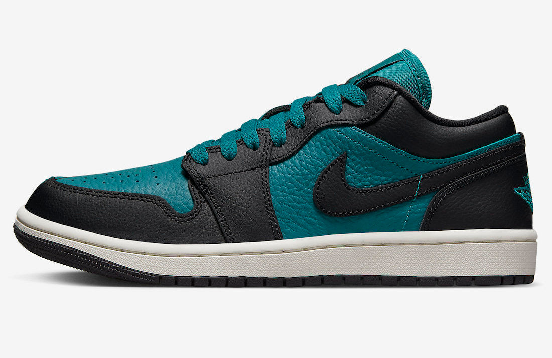 The Air Jordan 1 Low is officially showcased in another “Split” makeover as this variation dons an official color scheme of “Bright Spruce/Black-Sail.” Slated to make its debut this fall, the low-top boasts a tumbled leather construction which bears the defining split theme via black and spruce on the medial section followed by spruce and black on the lateral. Finally, the theme is further evident on the nylon tongues while it all rests atop a sail midsole and black rubber outsole.