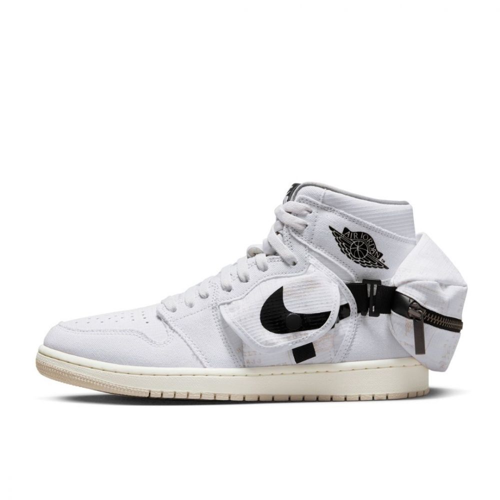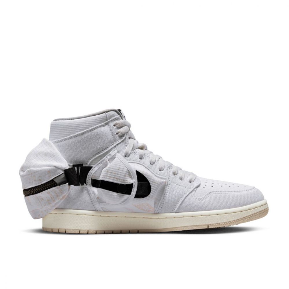 This Air Jordan 1 utility dons an upper constructed partly by canvas, while the base features nylon ripstop. Black takes over the Swooshes, Wings logo, and tongue logo. Two midfoot pockets are placed in front of a removable compartment, which features on Both heels. Aged, yellowed soles then round out the colorway.