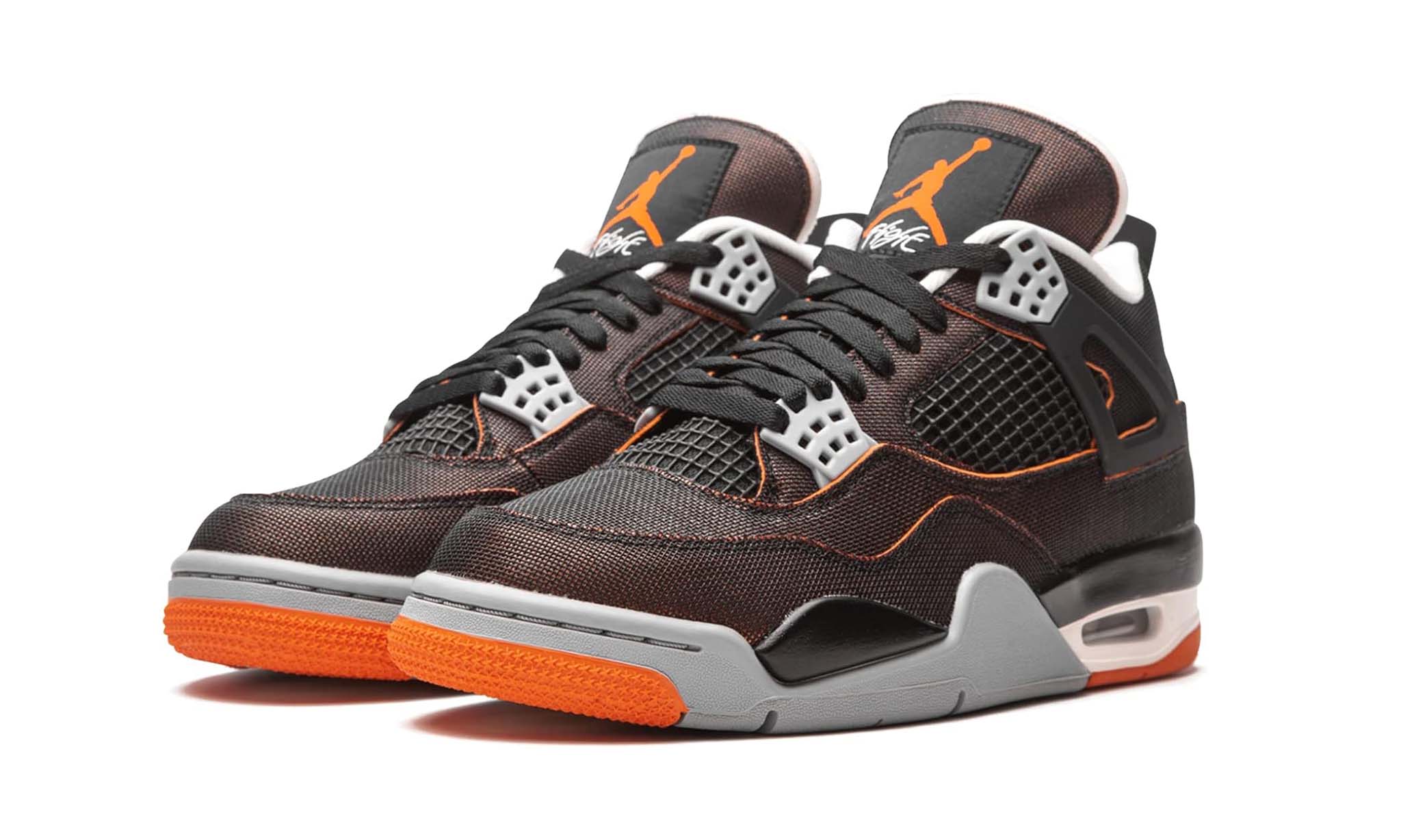 The Women’s Air Jordan 4 “Starfish” is the women’s sizing of Michael Jordan’s fourth signature shoe in a decidedly lifestyle adjacent colorway. An early 2021 release by Jordan Brand, the “Starfish” colorway features an interesting mixture of colors and materials that highlight the design’s versatility. The upper displays a blue ballistic mesh construction with an underlaid orange design beneath. Similarly to the original Air Jordan 4 design, mesh detailing can be found on both the tongue and mid-panel. Grey plastic eyelets and an orange accented Jumpman logo on the black nylon tongue tag add to the shoe’s retro appeal. Additional style elements include grey Jumpman branding on the heel, a black painted mudguard, and a small visible Air unit in the heel of the midsole. Release date: January 21, 2021.