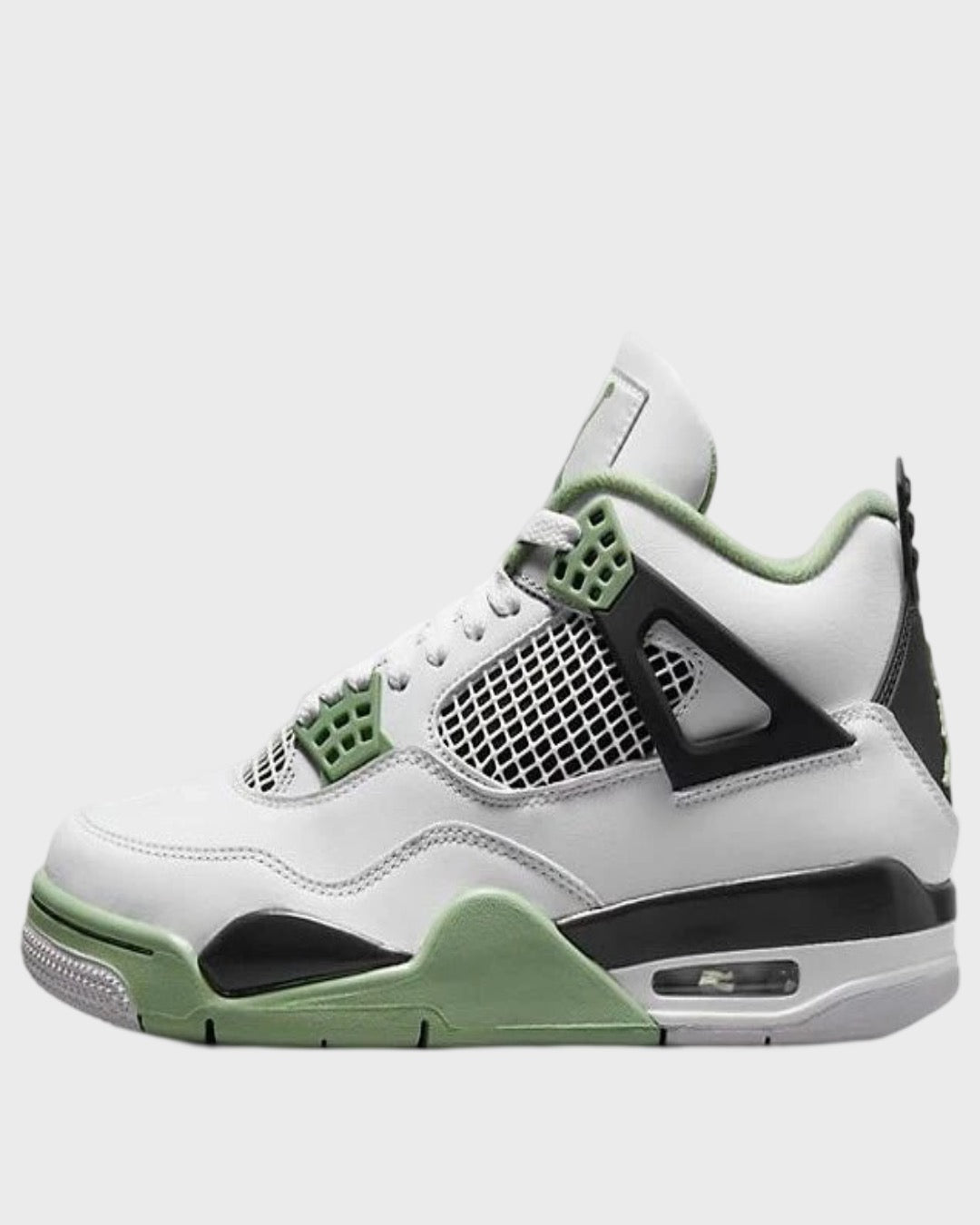 The Air Jordan 4 Seafoam (W) received the same color-blocking treatment as the Jordan 4 Fire Red, and Jordan 4 Military Blue. The Seafoam Air Jordan 4 features a smooth white leather upper, with a black midsole and heel tab. Seafoam green eyelets, mudguard, sock lining, and tongue and heel logos, add a layer of contrast to the sneaker.