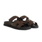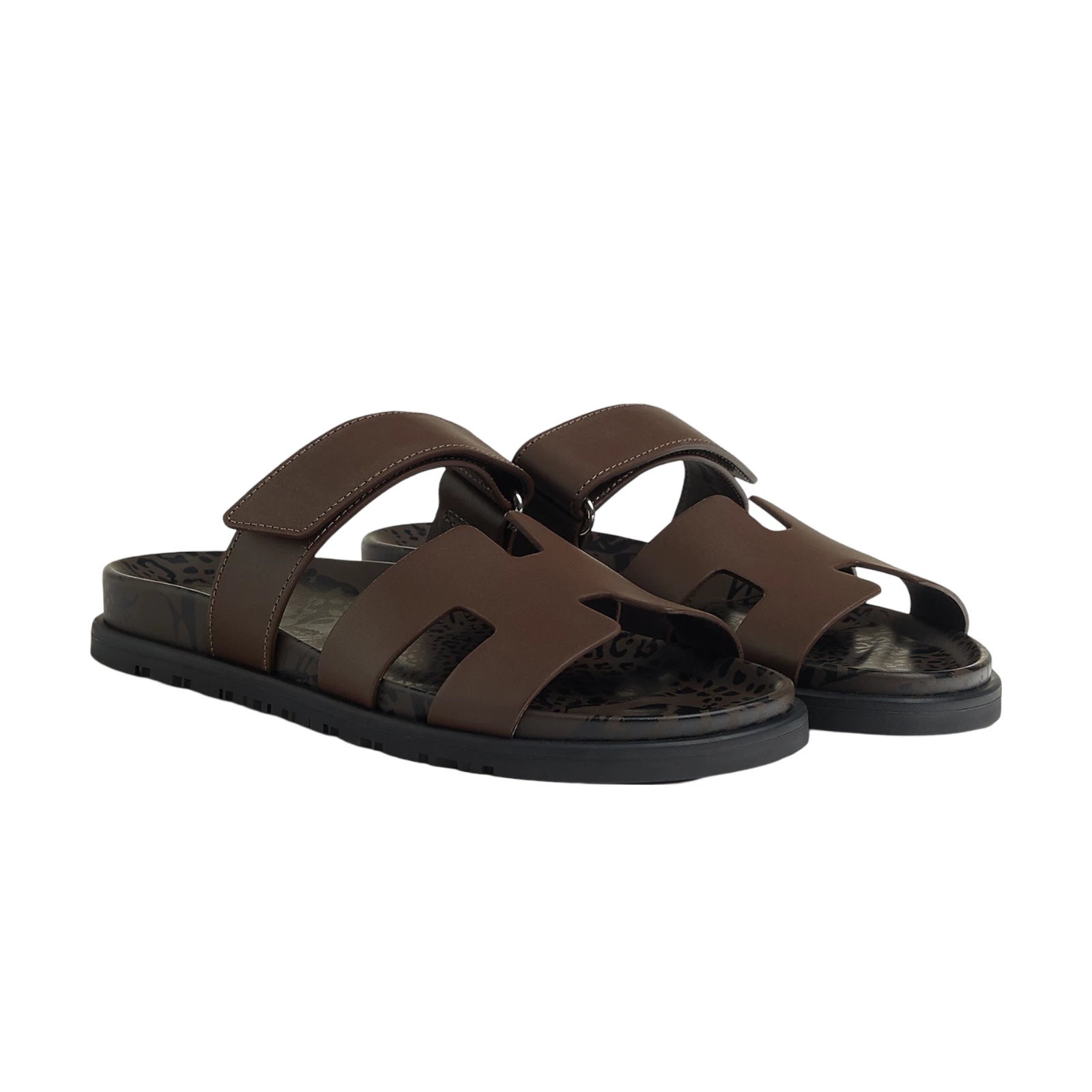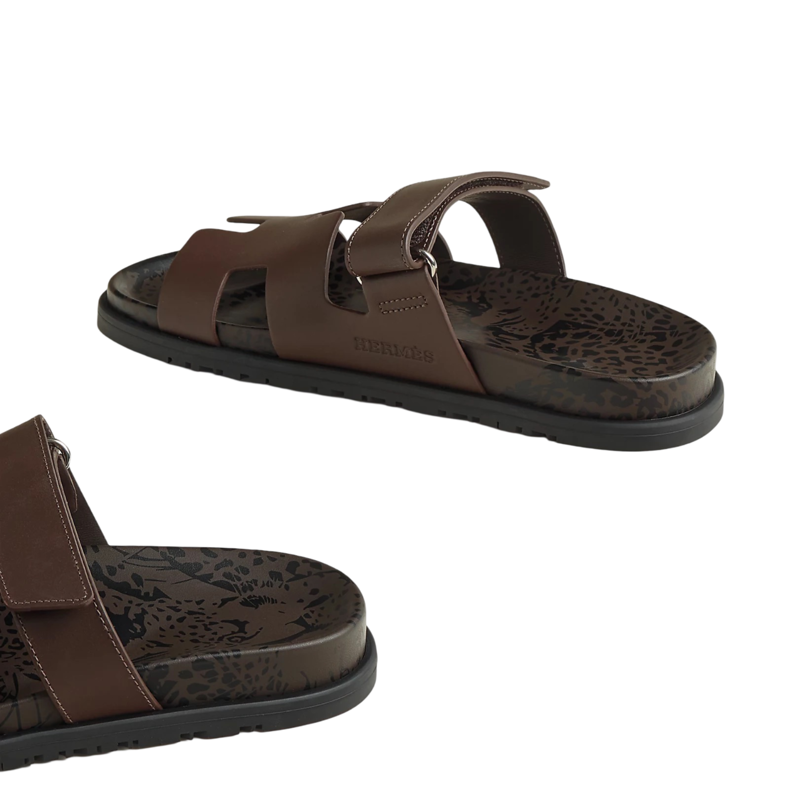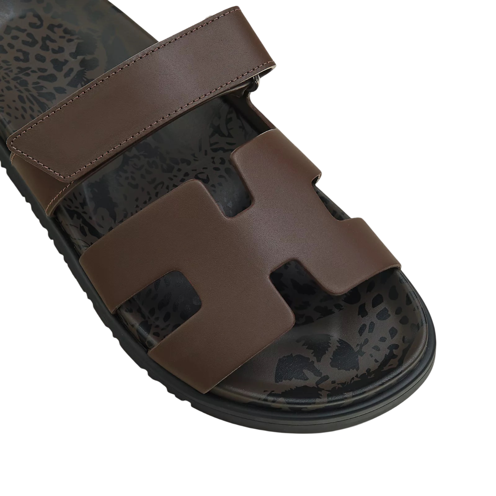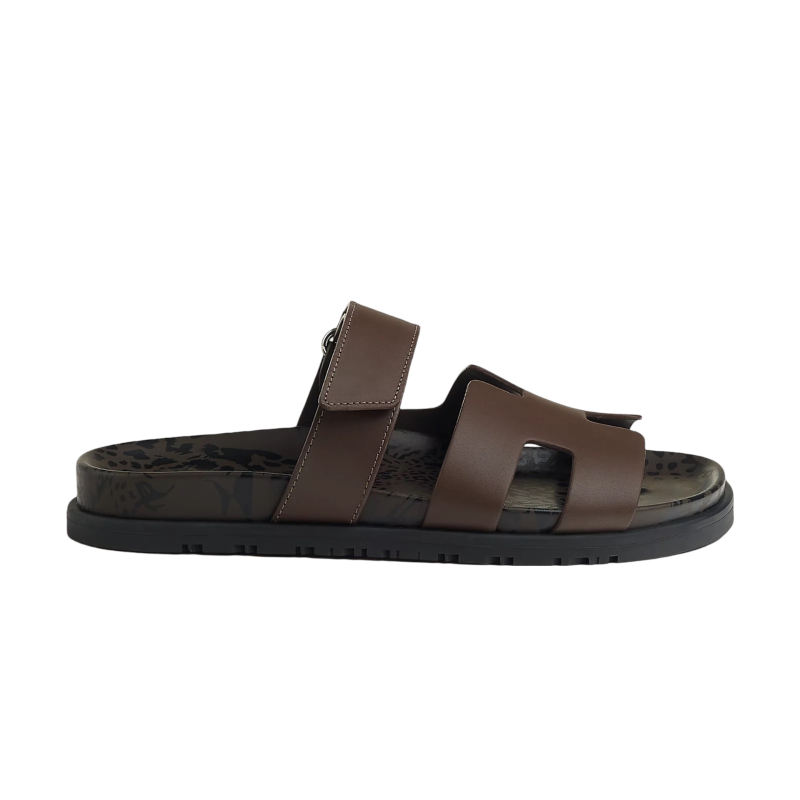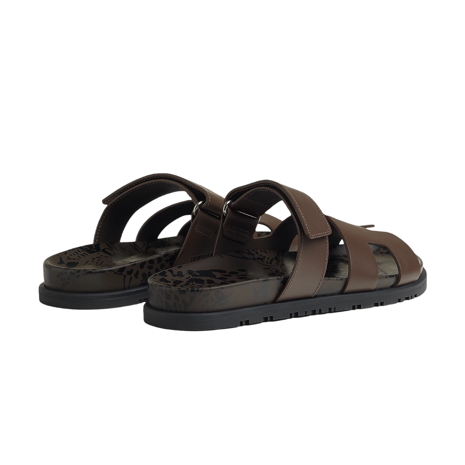 Techno-sandal in calfskin with anatomical rubber sole and adjustable strap.