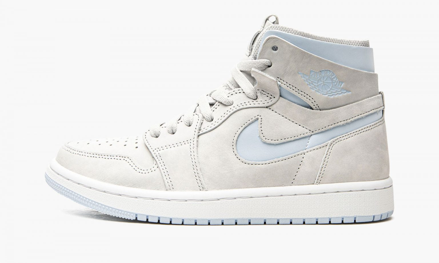 The Women’s Air Jordan 1 High Zoom CMFT “Grey Fog” is a women’s-exclusive colorway of the alternate version of Michael Jordan’s retro basketball shoe that features additional cushioning and other design modifications. The Jordan 1 Zoom Comfort debuted in 2020 as part of Jordan’s continuous efforts to expand the look and performance components of the veritable shoe. Armed with even more padding around the ankle collar, the Jordan 1 High Zoom CMFT also combines different materials and colors for a fresh new vibe. On the “Grey Fog,” the upper appears in Grey Fog-colored nubuck and features a cut-out Celestine Blue Swoosh on the sides and “Wings” logo on the collar. The Jordan 1 Comfort features an unfinished collar and a “Zoom Air” branded tongue tag. The advanced cushioning technology is encased within the white midsole for all-day comfort. Release date: November 18, 2021