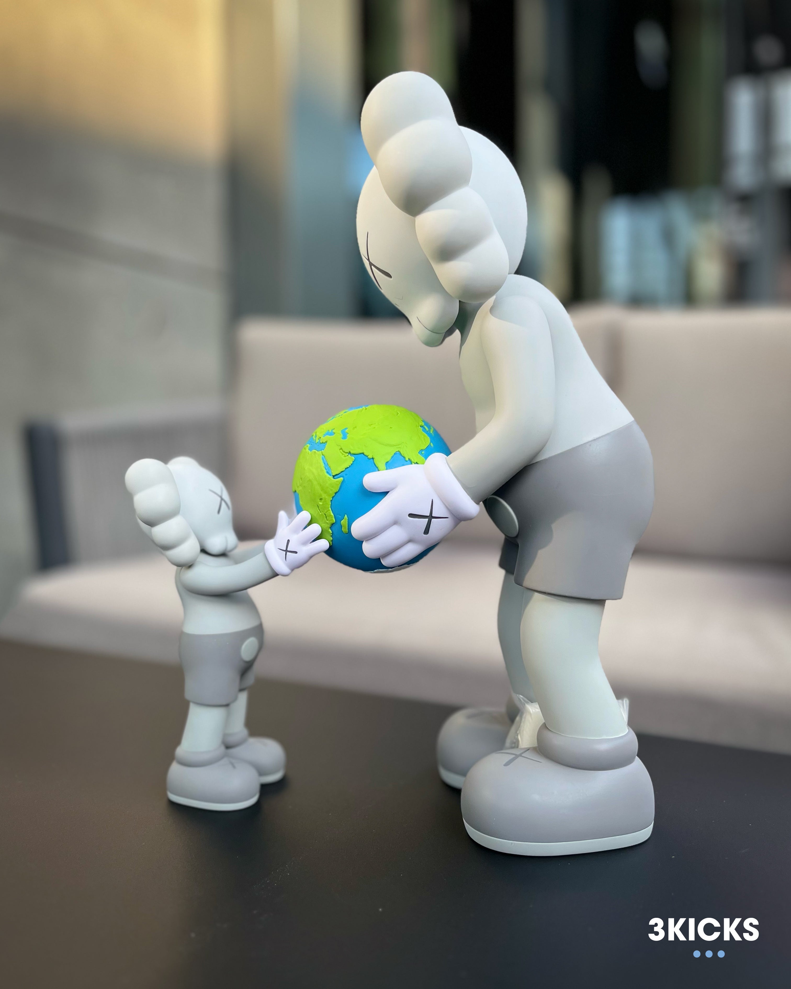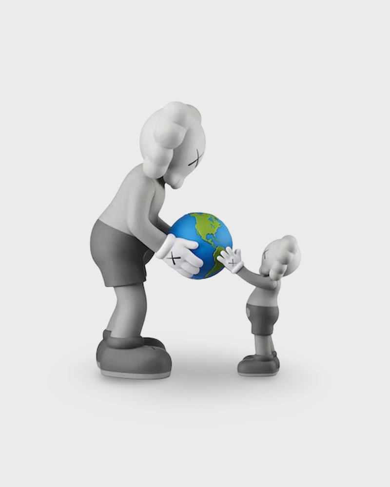 The KAWS THE PROMISE Vinyl Figure Brown is a limited-edition collectible that features KAWS' iconic Companion characters. This figure depicts a larger and smaller Companion holding a model of Earth, symbolizing unity and connection. It was released on November 22, 2022