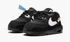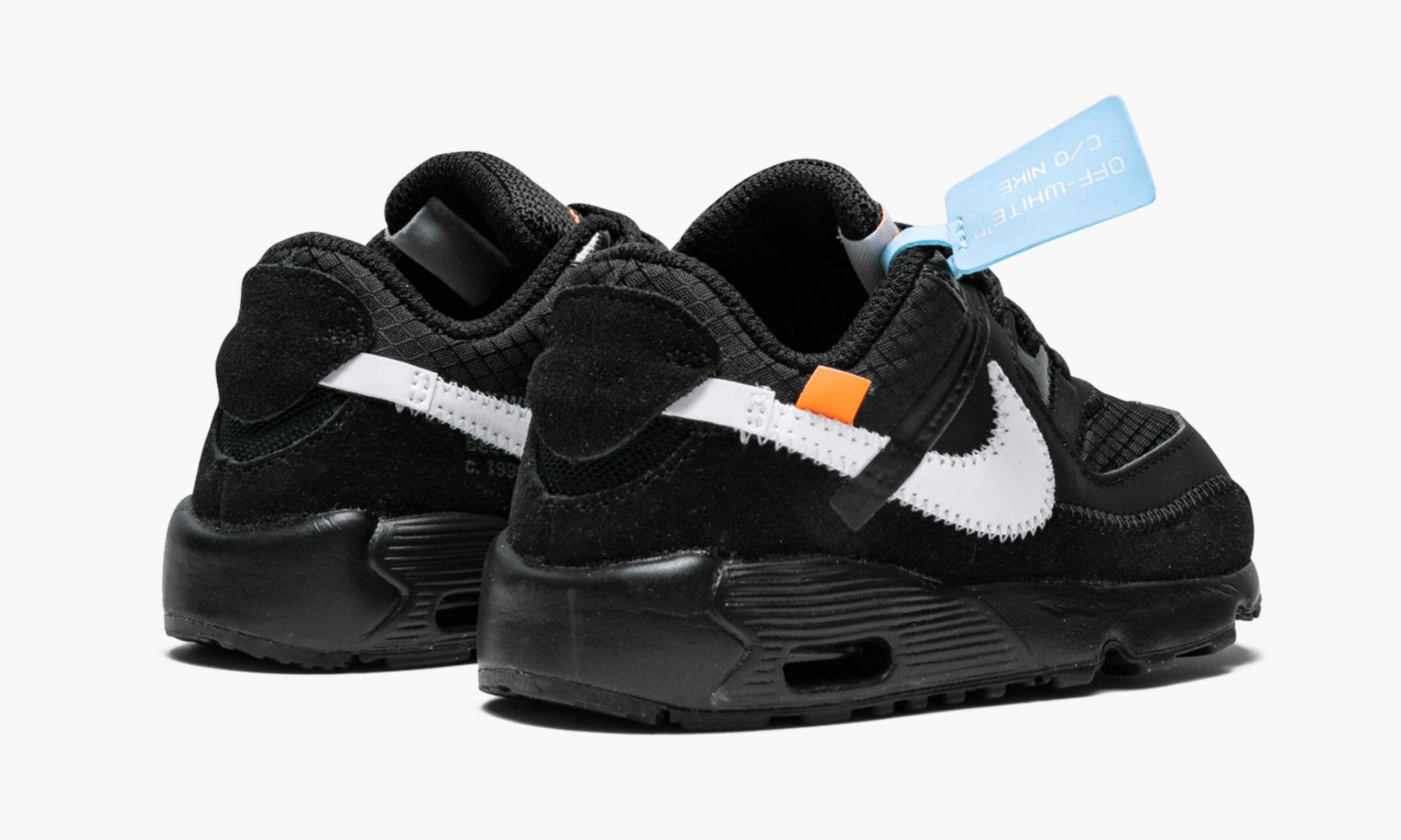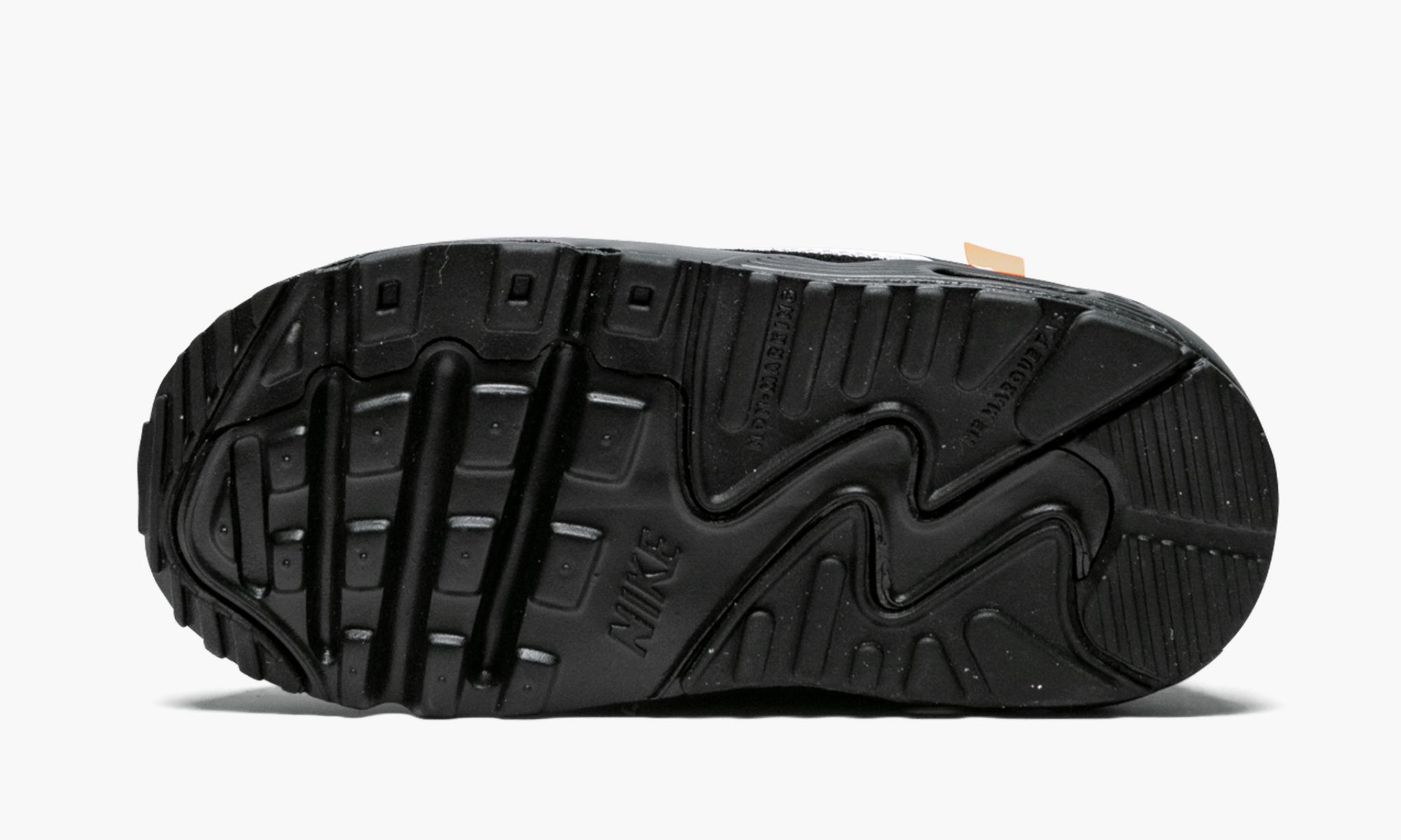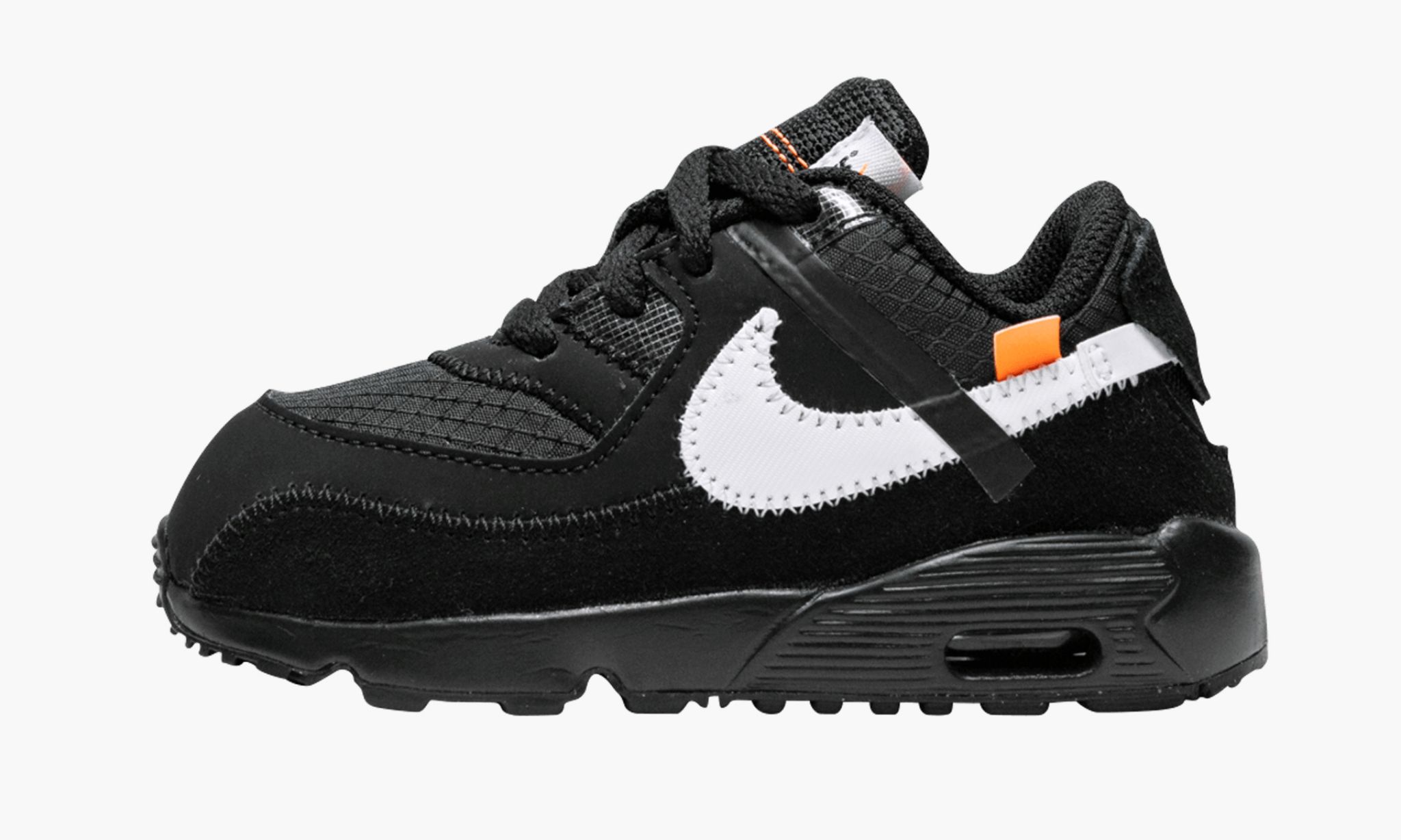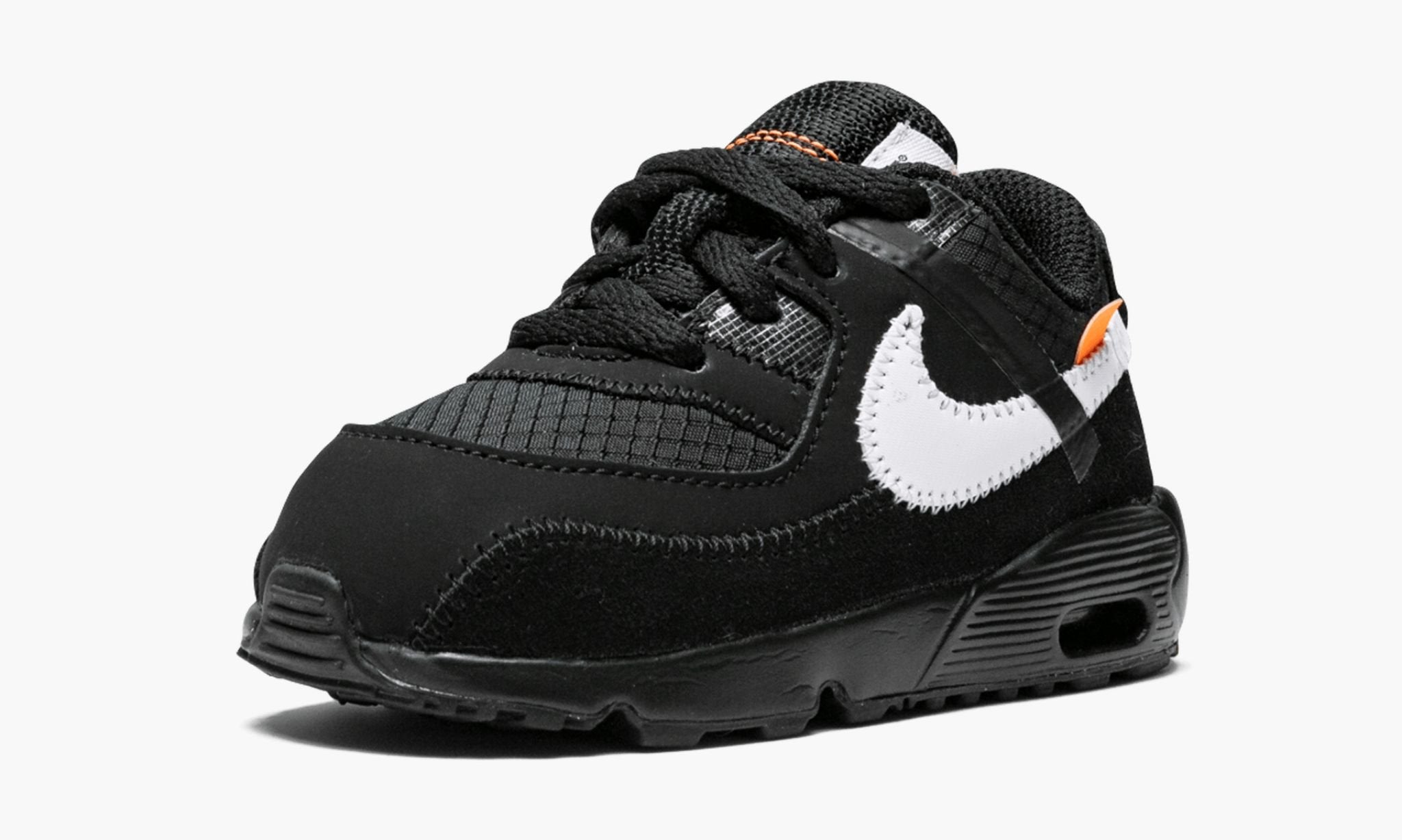 The Off-White x Nike Air Max 90 TD “Black” is the toddler sizing for the popular collaboration from Virgil Abloh and Nike. This baby-sized version mirrors the adult sizing of the classic Air Max model that was redesigned by Abloh for his “The 10” collection. The colorway features an all-black mesh, synthetic, and suede upper with white accents and touches of neon orange. Like the the adult Air Max 90, a visible Air window is found in the heel. Designed for the youngest Off-White and Air Max aficionados, the Off-White x Nike Air Max 90 TD “Black” for babies released in 2019